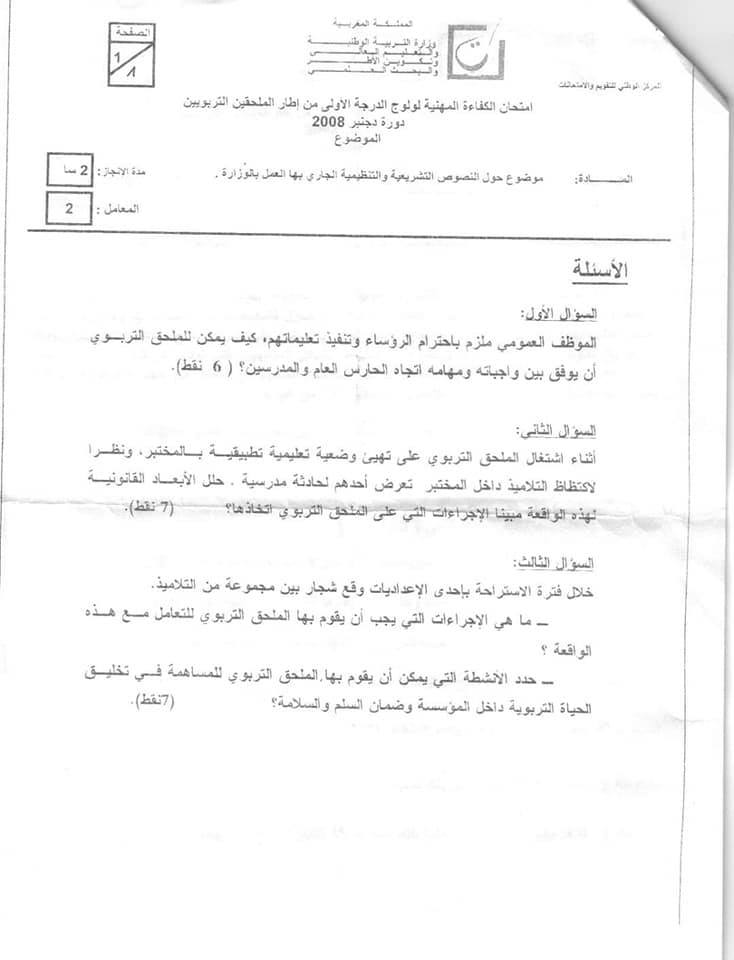 نموذج مباراة توظيف الملحقين التربويين دورة 26 دجنبر 2009